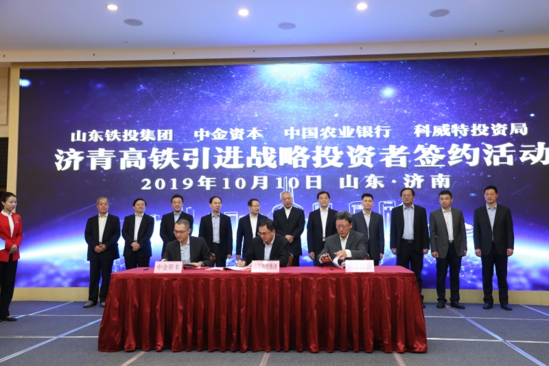 10月10日,济青高铁引进战略投资者签约活动在山东大厦举行,山东省凌文副省长,发改委、国资委、交通厅、威廉希尔体育集团等主要负责人,中金资本、科威特投资局、农银投资等机构投资者主要负责人出席会议。济青高铁作为国家铁路投融资体制改革后第一条以地方为主投资建设的高速铁路,本次引战的成功是我省落实中央和山东省政府部署、探索中国高速铁路项目投融资新模式、推动“双招双引”的重要举措,标志着我省在加快推进基础设施建设投融资改革方面又一次走在了全国前列。