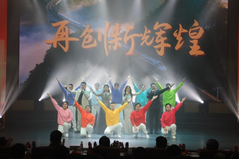最后,联欢会在歌舞《阳光路上》的恢弘旋律中圆满落幕,全体演职人员与现场观众共同唱响对新年的美好祝福。集团领导班子成员等到场领导走上舞台与演职人员合影留念。