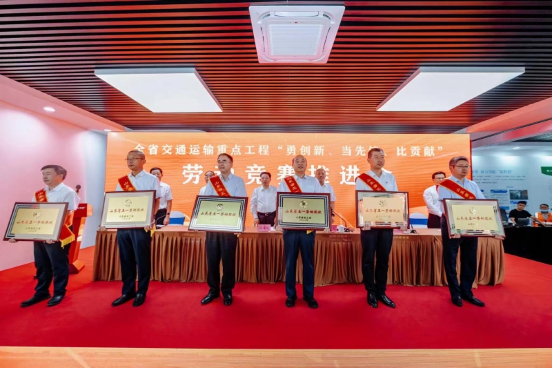 7月6日上午,全省交通运输重点工程“勇创新、当先锋、比贡献”劳动竞赛推进会在济南市长清区举行。集团党委副书记、总经理王基全参加大会,并代表集团上台领取了山东省五一劳动奖状。
