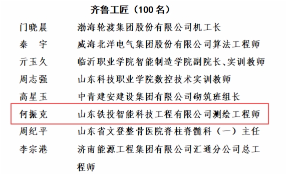 近日,山东省总工会发布了2025年齐鲁大工匠、齐鲁工匠、山东手造大工匠、山东手造工匠名单,威廉希尔体育智能科技工程有限公司何振克获“2025年度齐鲁工匠”荣誉称号。