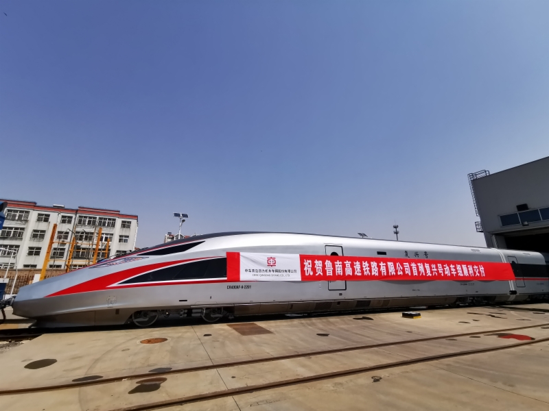 4月17日,在中车青岛四方机车车辆股份有限公司,鲁南高铁公司采购的编号为CR400AF-A-2201的首列复兴号动车组顺利交付,当日经济青高铁进入济南东动车所存放。