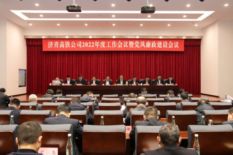 2月17日,济青高铁公司召开2022年度工作会议暨党风廉政建设会议,全面总结2021年工作,部署2022年重点任务。铁投集团党委书记董事长姜长兴,总经理王基全出席会议。公司全体干部职工,潍烟、莱荣铁路各站前、站后施工标段集团分管领导、项目经理、书记,以及设计、监理、检测单位等负责同志参加会议。