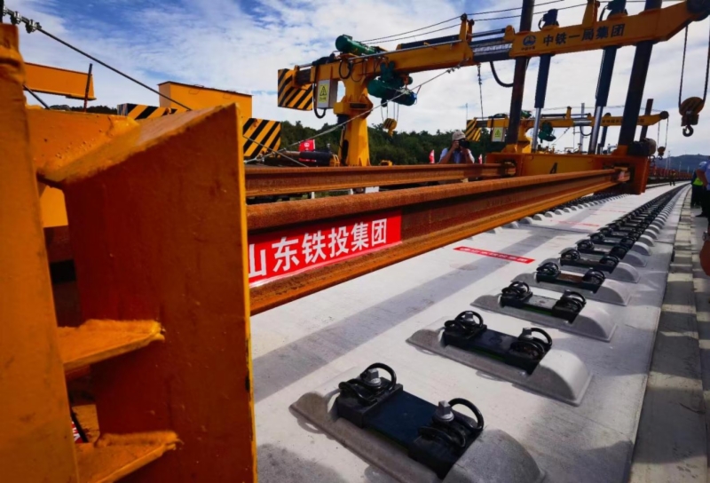 9月21日,潍烟高铁蓬莱至烟台方向最后一对500米长钢轨,在我国自主研发的CP500Z型智能化、多功能本邻线长轨铺设机组牵引下,稳稳落在芝罘站外刘家线路所4号岔前,标志着潍烟高铁正线铺轨全部完成,安全顺利实现正线铺轨贯通重大节点目标,距离开通运营又进了一步!