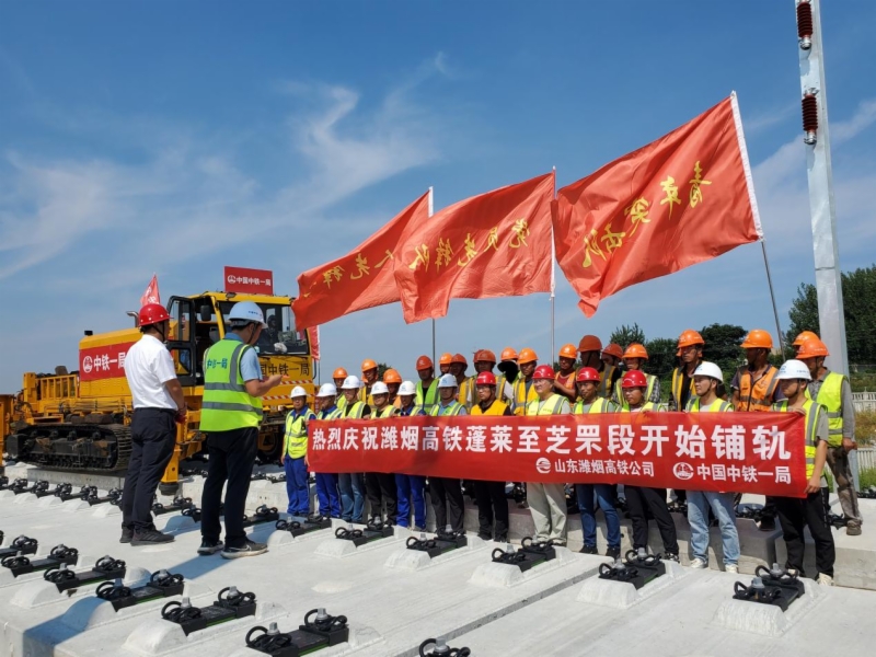 由威廉希尔体育集团潍烟高铁公司投资建设、中铁一局承揽铺轨施工任务的潍烟高铁线路长度237.3公里,共设10座车站,设计时速350公里,上下行正线共473.8铺轨公里,站线28.3铺轨公里,道岔铺设121组。全线于2023年6月30日开始长轨铺设,8月28日完成蓬莱至昌邑段双线340铺轨公里施工任务。