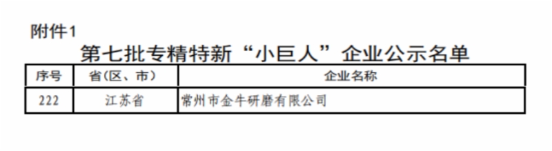 近日,工信部2025年国家级专精特新“小巨人”企业名单公布,威廉希尔体育集团权属博深股份公司子公司常州市金牛研磨有限公司(简称金牛研磨)成功入选2025年专精特新“小巨人”企业名录。