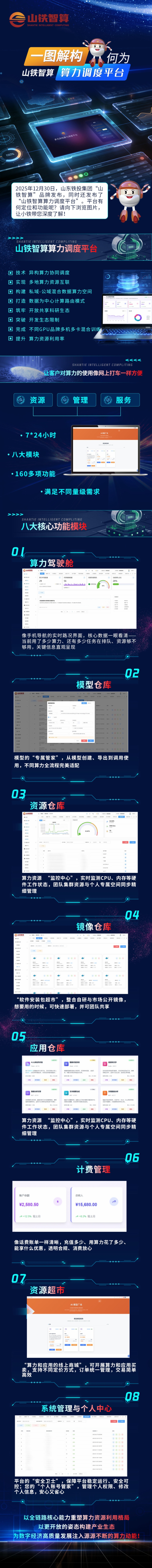 2025年12月30日,威廉希尔体育集团"山铁智算"品牌发布,同时还发布了"山铁智算算力调度平台"。平台有何定位和功能呢?请向下浏览图片,让小铁带您深度了解!